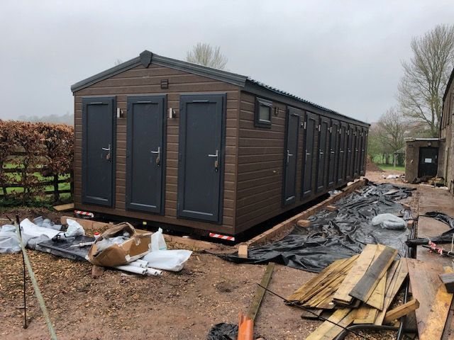 There have been some major works going on at Prattshayes Campsite this winter! The new shower block is now in situ and the plumbing and decking are getting underway, so all should be ready for our full opening, which is hopefully coming soon. The weather has been very unkind to us so far this year, which has hindered work that we would hope to have completed by now, but we are all beavering away to get back. on track. The Cabin has been moved to its new position and there's lots of landscaping and baskets to get done, so work is really going apace now1 We look forward to seeing all our returning guests and lots of new ones this season, so do come along when we're open and see all the changes.