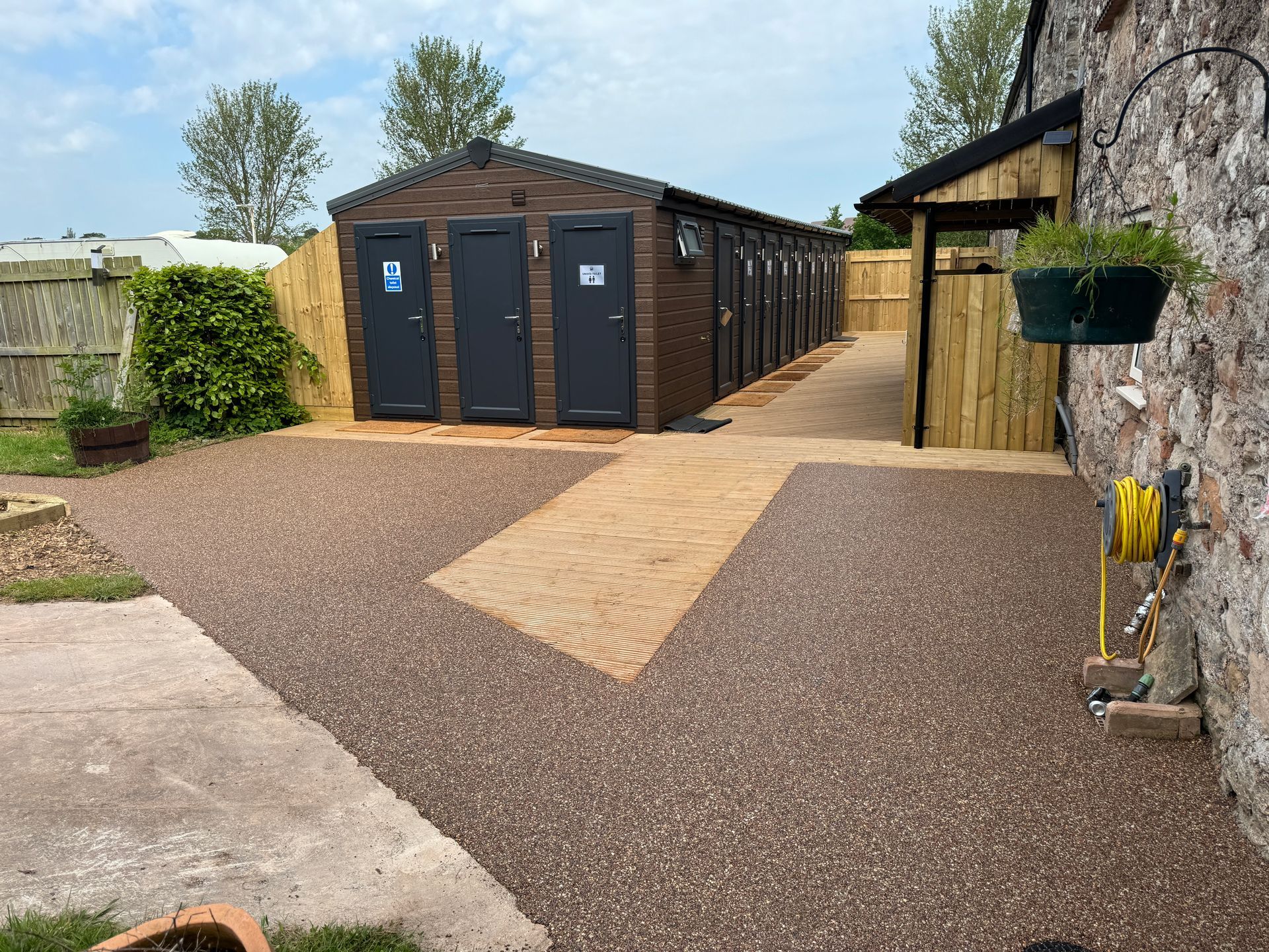 It's been a challenge doing the blog at Prattshayes Campsite during these difficult times, but we finally think we've turned the corner with a number of sunny days on the trot and no rain! The rain has been unbelievable and has caused unprecedented problems for us, with us having to close all our grass pitches and only able to operate with ten hardstanding pitches since the start of the season. The new shower block which we are so excited about, also suffered hold ups due to the ground being too wet to move it into place for weeks, however, I'm so happy to report that it's in situ, plumbed in, electric working and just the last snagging jobs to complete and we'll be able to open them, can't tell you how happy we all are at that prospect. The changes to the site are exciting for us but there's still a lot of landscaping etc to do before it looks at it's best, but we're working hard to make it as good as we can. Look forward to seeing you all and hearing your views.
